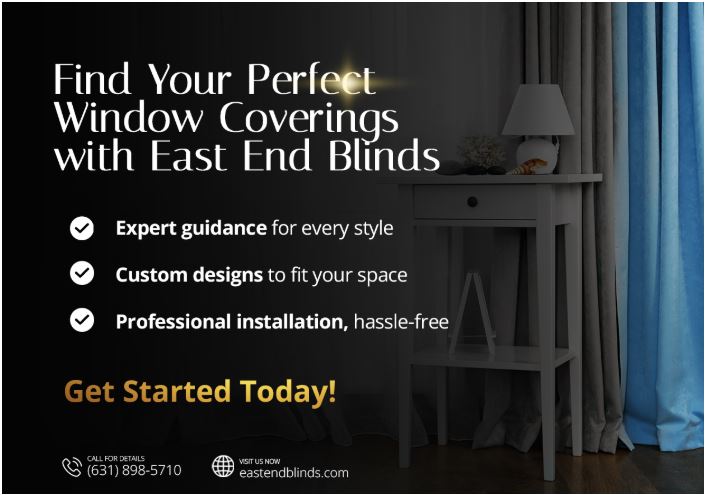 East End Blinds offers stylish and high-quality window coverings for any home. We provide custom solutions to match your style and needs. Our team makes everything simple, from choosing the right window treatment to installation. Whether you like a modern or classic look, we have the perfect option for you. With East End Blinds, you get great quality, durability, and style for your space.