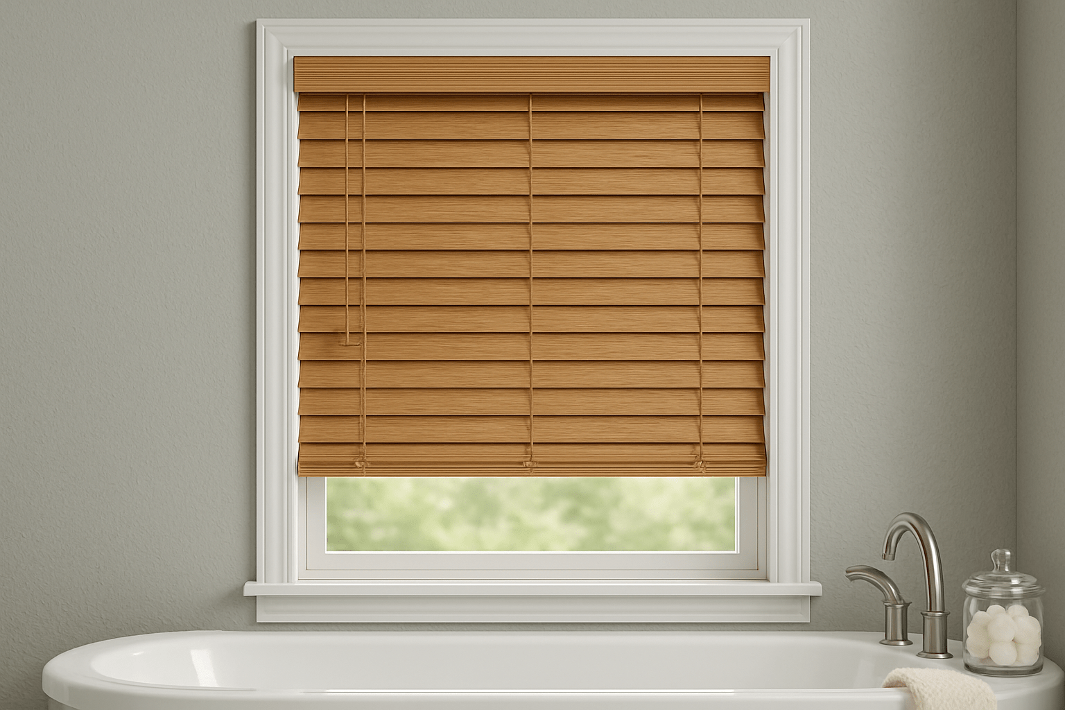 Moisture is the main reason real wood blinds fail in bathrooms and kitchens. Faux wood is engineered to resist: