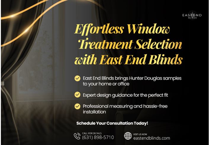 Located on Long Island, New York, East End Blinds provides premium custom window treatments tailored to residential and commercial spaces. Serving areas from Montauk to Manhattan, they offer a wide range of high-quality products designed to enhance both aesthetics and functionality.