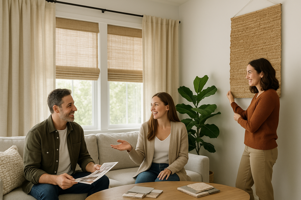 | Roman shades + drapery | Adds luxury, improves energy efficiency |