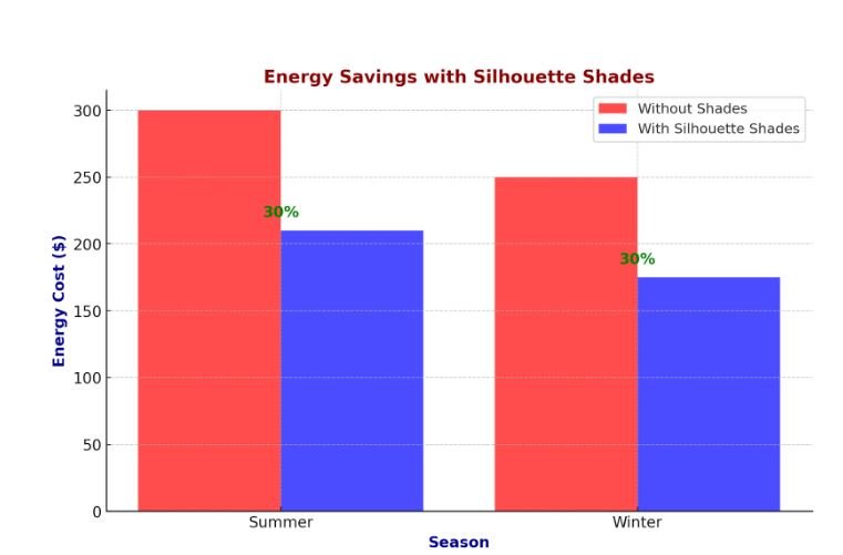 Silhouette window shades help regulate indoor temperatures by reducing heat loss in winter and blocking excess heat in summer.